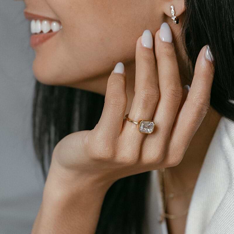 - JP GILD BEZEL SET EMERALD CUT DIAMOND RING Jane Pope