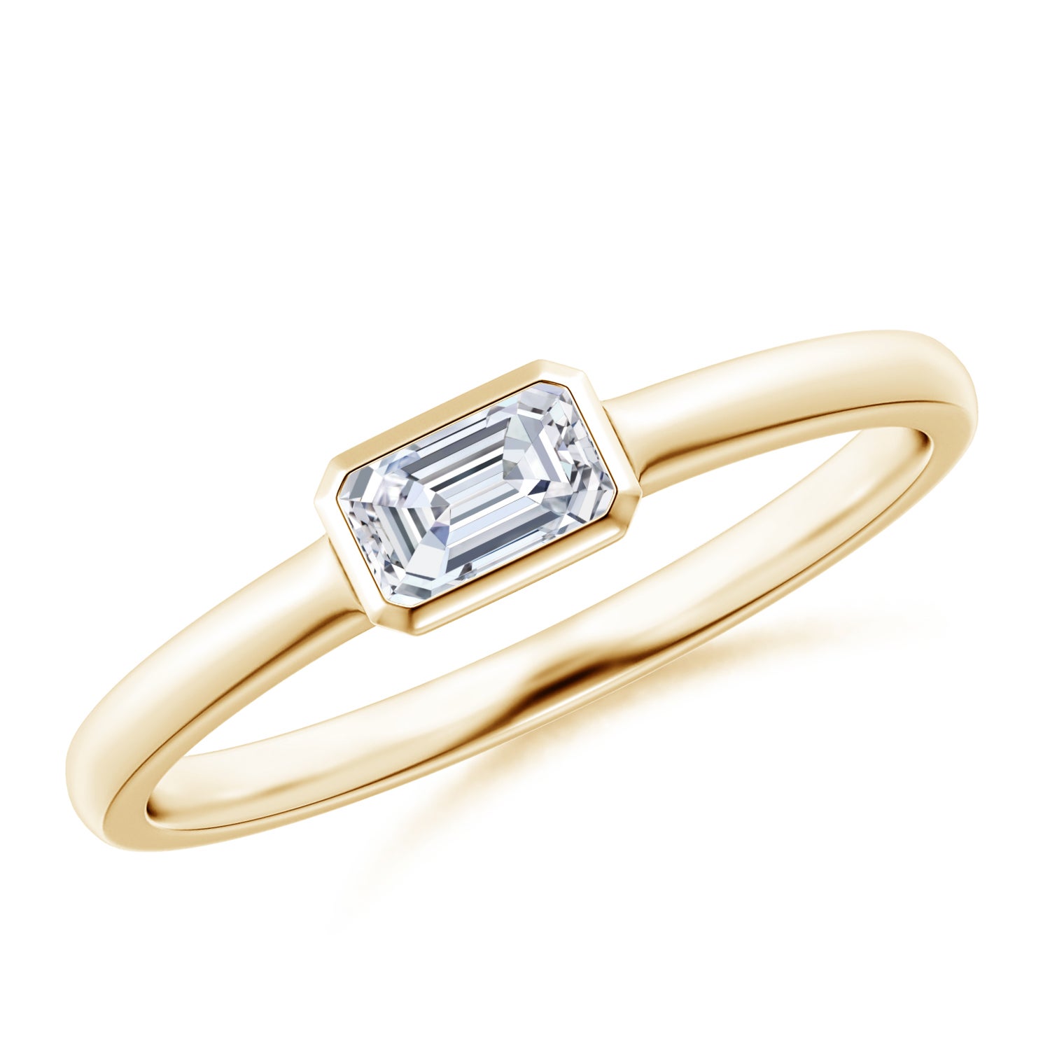 East-West Emerald-Cut Diamond Solitaire Ring in Bezel Setting