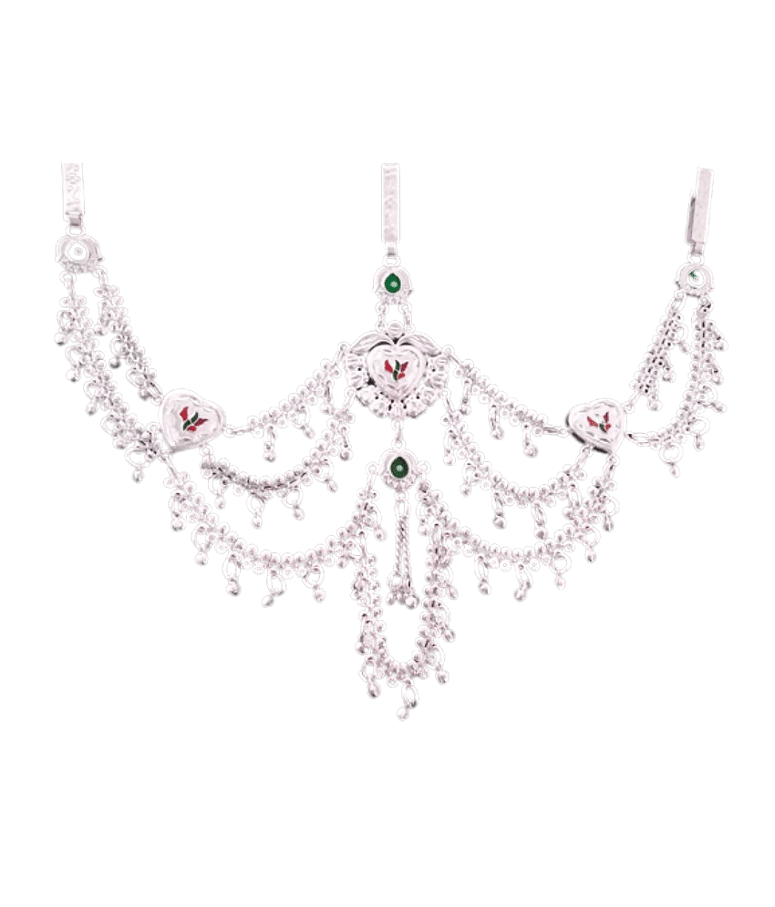 - Peacock Style Kamarband, Waistchai, Kandora With Silver Polish