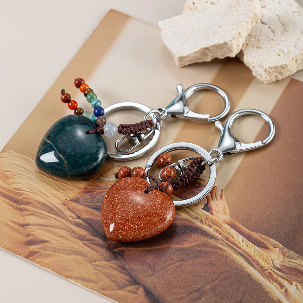 - Natural Crystal Keychain,Gemstone Love Key Chain,Heart Stone