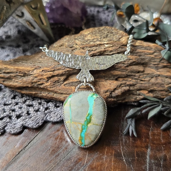 TURQUOISE HAWK Necklace Boulder Nevada Ribbon Turquoise 925