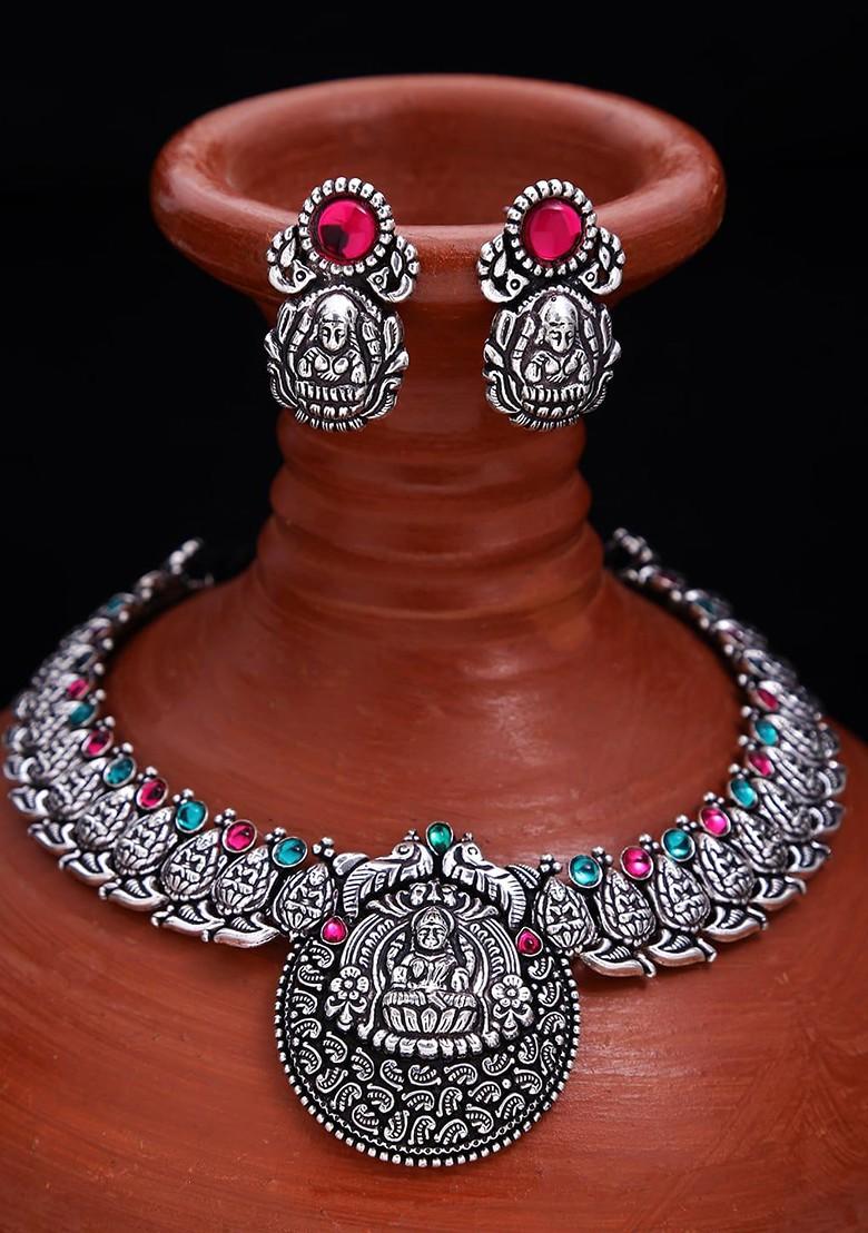 - Oxidized Necklace Set with Earrings Indian Oxidised Mala Set
