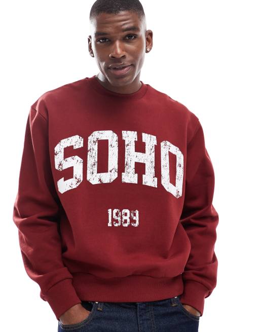 - ASOS DESIGN oversized sweatshirt in brown with collegiate Brooklyn