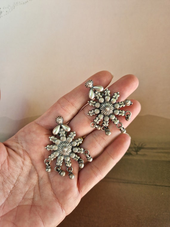 - Silver Sterling Earrings Ethnic Indian Floral Stud Jhumka Dangle Earrings