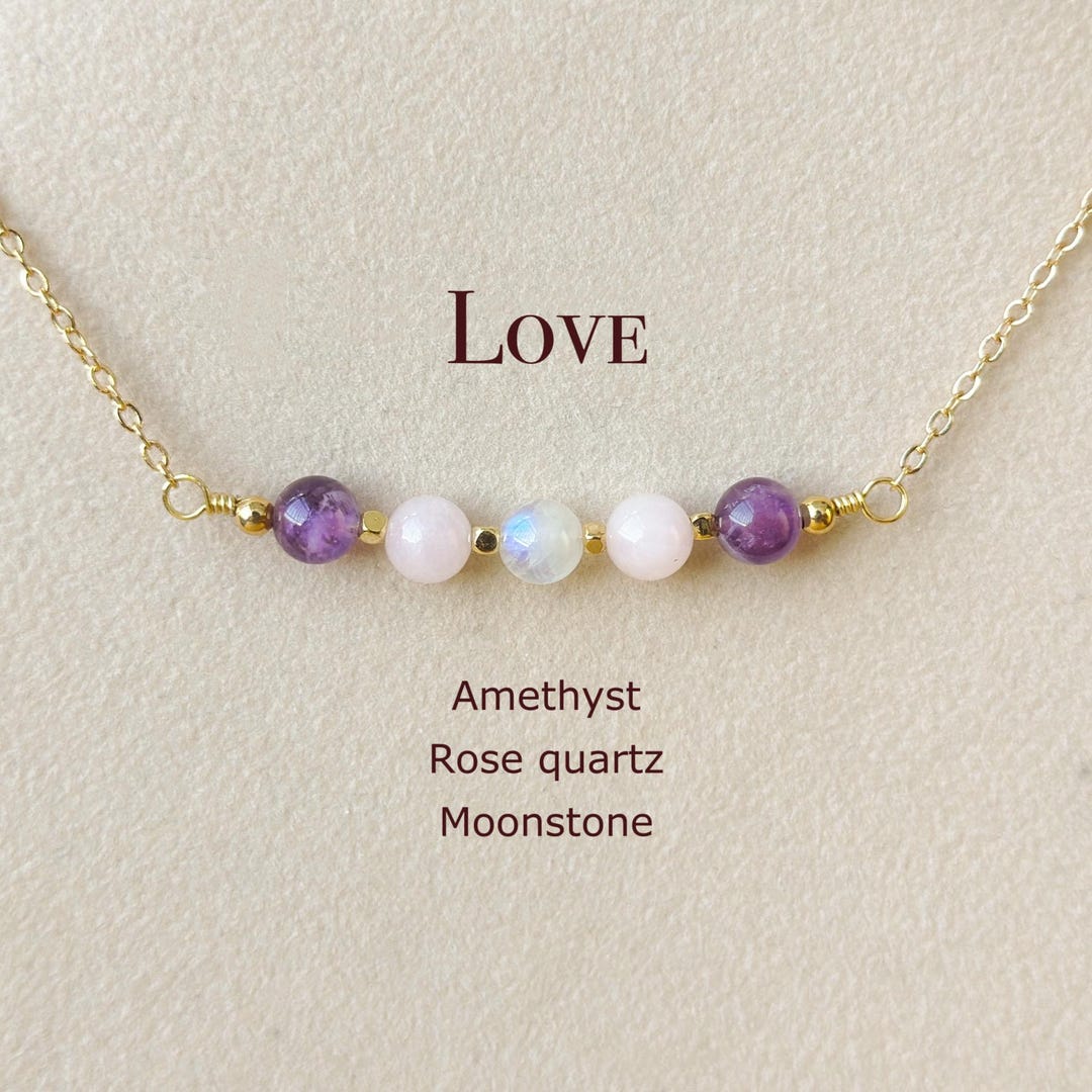 Buy Love-themed Necklace, Necklace for Women, Rose Quartz Jewelry, Love Crystal, Moonstone, Amethyst, Genuine 6mm Pink Purple Stone, Gift Online in