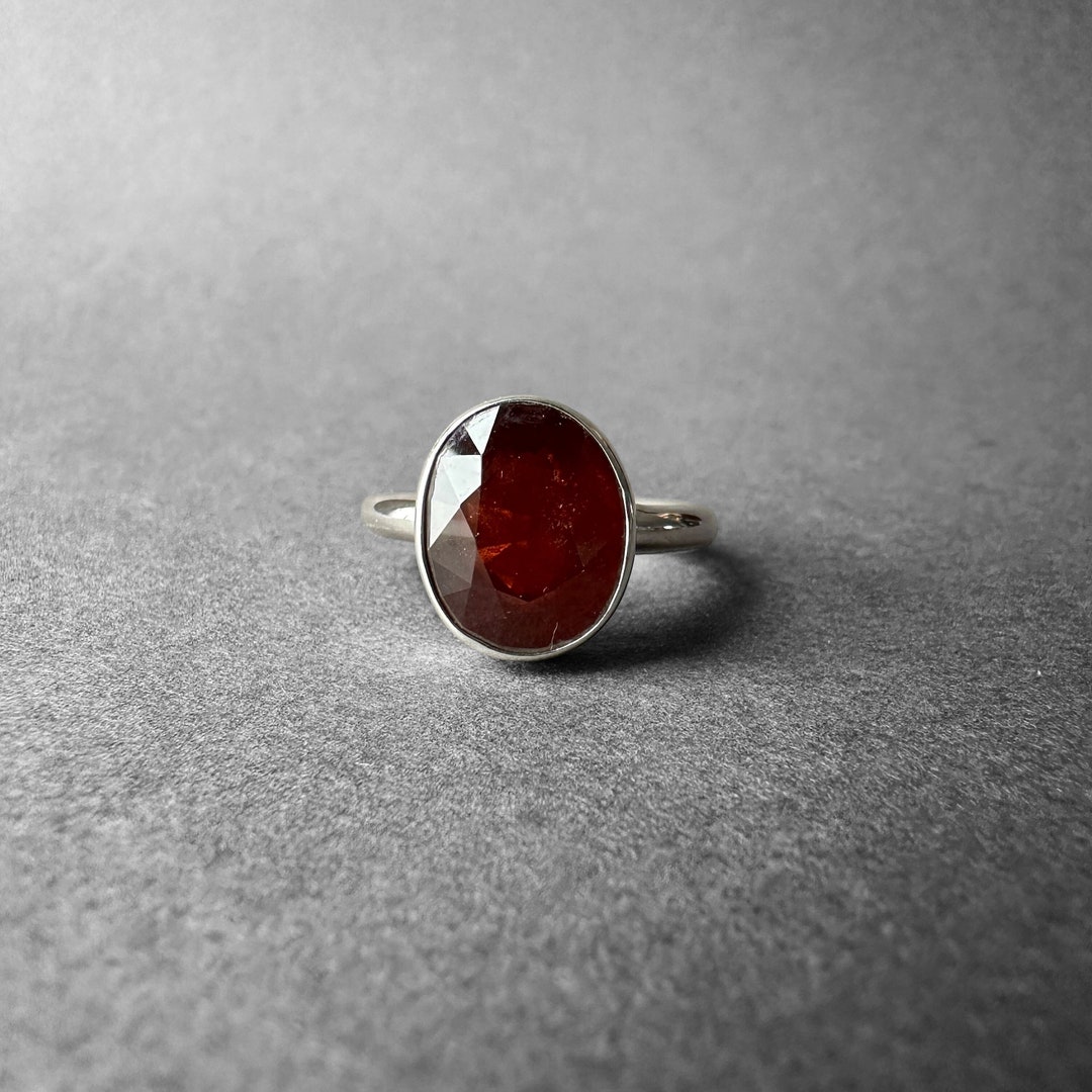 Natural Red Spessartine Garnet Silver Ring, Spessartine