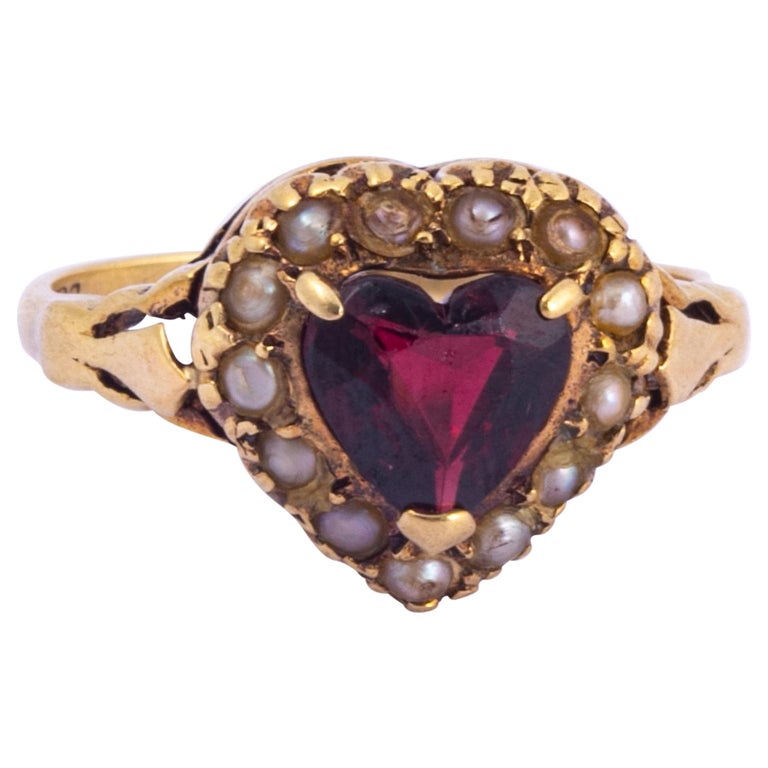 Victorian Garnet and Pearl Carat Gold Heart Ring