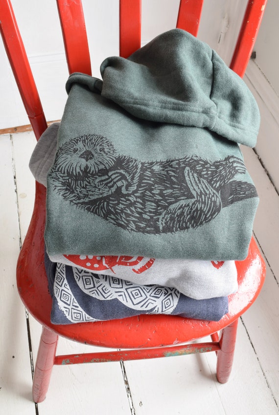 Hand Printed Otter Hoodie: Unisex Fleece Pullover Dark Green, Size Chart for Shoes TheOlawaleBrand Cheap Sale